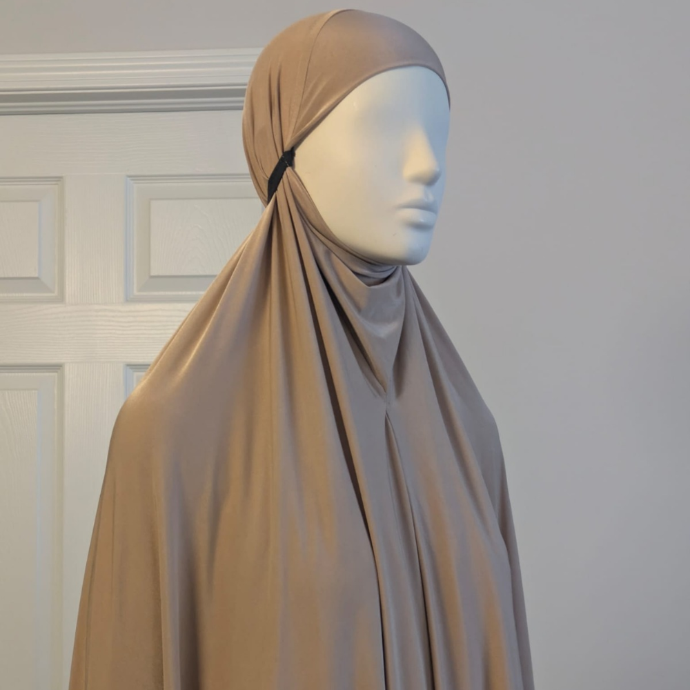 A soft, lightweight jersey jilbab offering full-length coverage, breathable comfort, and a smooth, modest drape—perfect for everyday wear and prayer.